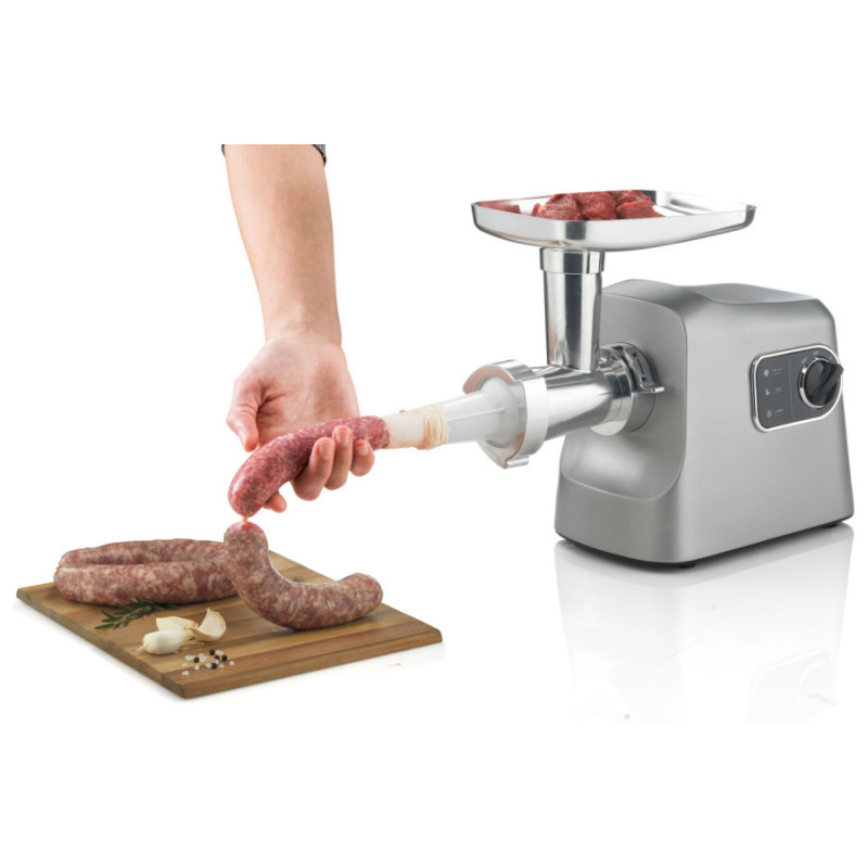 Комплектація:м'ясорубка, інструкція, штовхач, насадки для терки та шинкування, насадка для кеббе, насадка для приготування домашніх ковбасок, 3 решітки, шнековий соковидавлювач
