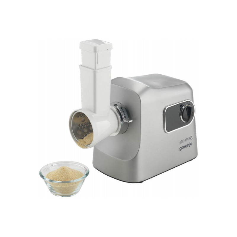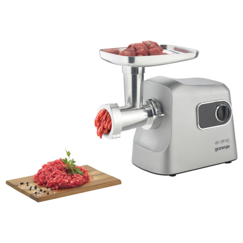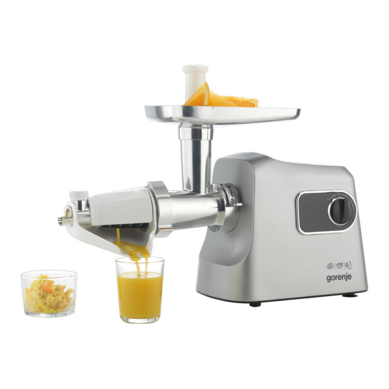 Gorenje М'ясорубка, 2500Вт, 2.8кг/хв, 3 решітки, насадка для ковбас, кеббе, шнековий соковидавлювач, 3 терки, пластик/метал, нерж (MG2500DS)