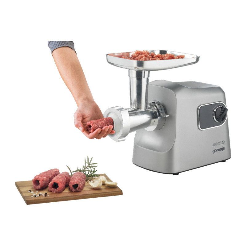 М’ясорубка Gorenje MG2500DS поєднує потужність 2500 Вт і високу продуктивність 2,8 кг/хв. Вона комплектується трьома решітками, насадками для ковбас, кеббе та шнековим соковидавлювачем. Має реверс, захист від перегріву й миттєву зупинку двигуна. Корпус із пластику та металу забезпечує надійність і легке очищення.