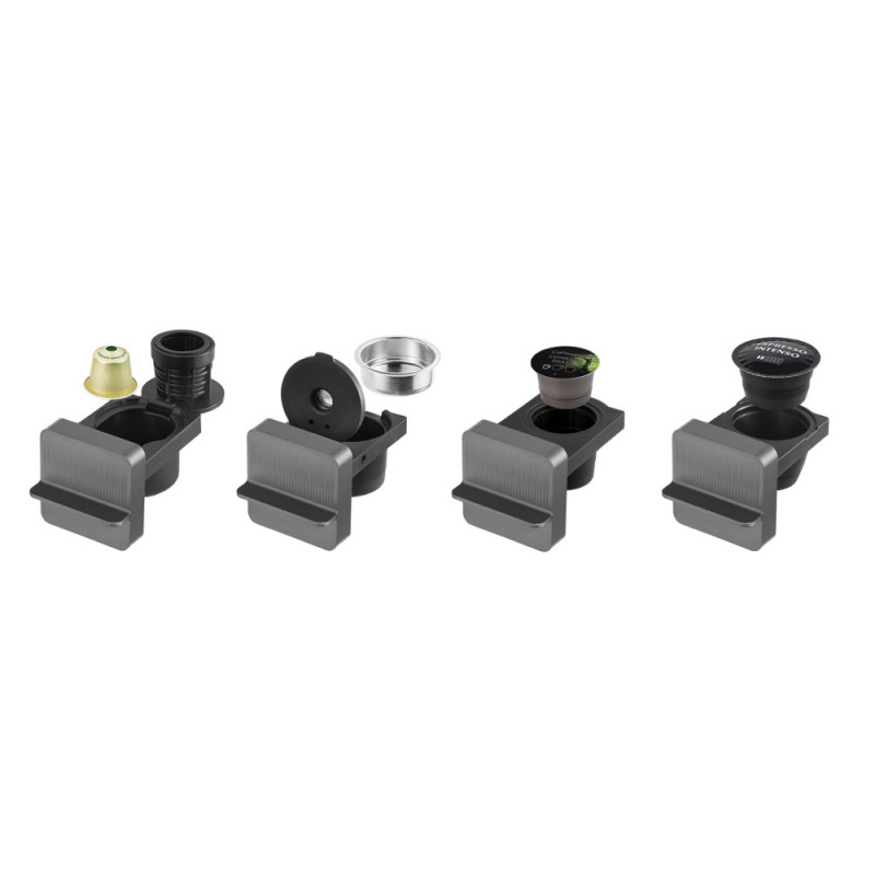 автоматичний капучинатор, 3 адаптери для більшості звичайних кавових капсул, 3 розміри чашки, перехідник для меленої кави