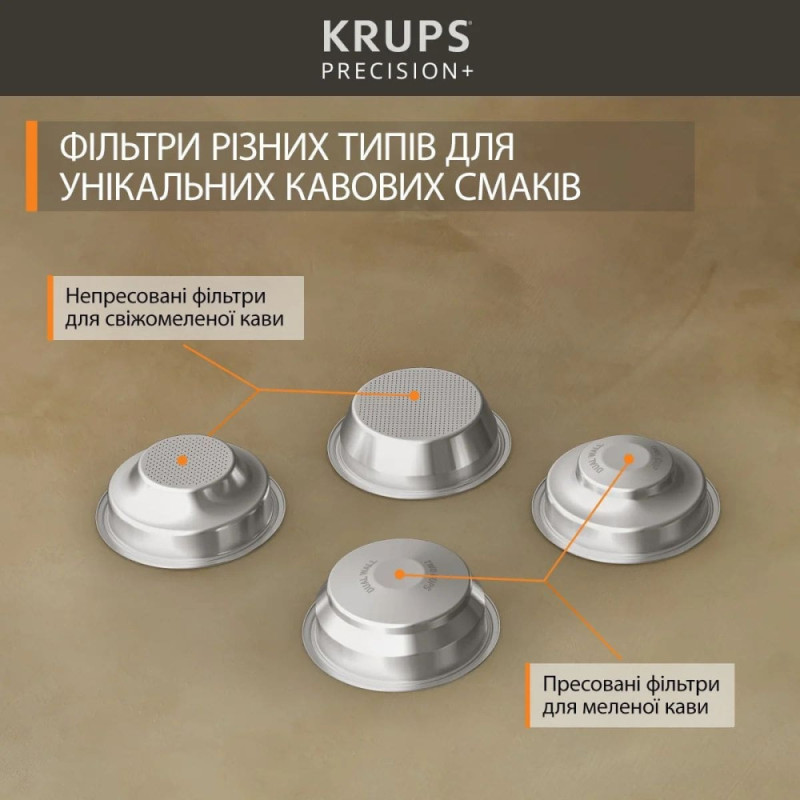 Krups Кавоварка ріжкова Precision+, 3.5л, вдубована кавомолка, ручний капучинатор, 15 бар, чорний-сірий (XP804T10)