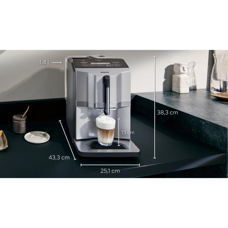 Siemens Кавомашина, 1.4л, зерно+мелена, автомат.капуч, LED-дисплей, авторецептів -5, чорно-срібний (TI353201RW)