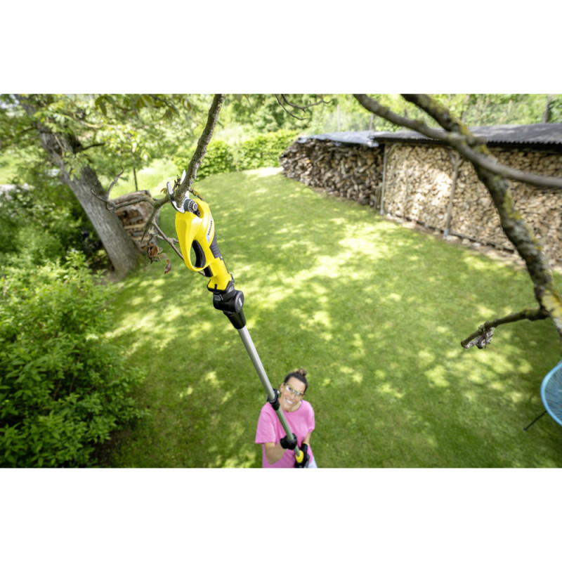 Телескопічний подовжувач Kärcher PGS 4-18 (2.445-247.0) дозволяє регулювати висоту від 145 до 205 см для зрізання гілок на висоті до 3,5 м. Кут повороту до 135° забезпечує гнучкість під час обрізки дерев. Сумісність з шабельною пилою PGS 4-18 та сучкорізом TLO 2-18 полегшує встановлення без інструментів. Легкий алюмінієвий корпус вагою 1,02 кг зменшує навантаження на руки. Цей аксесуар оптимізує догляд за садом без сходів.