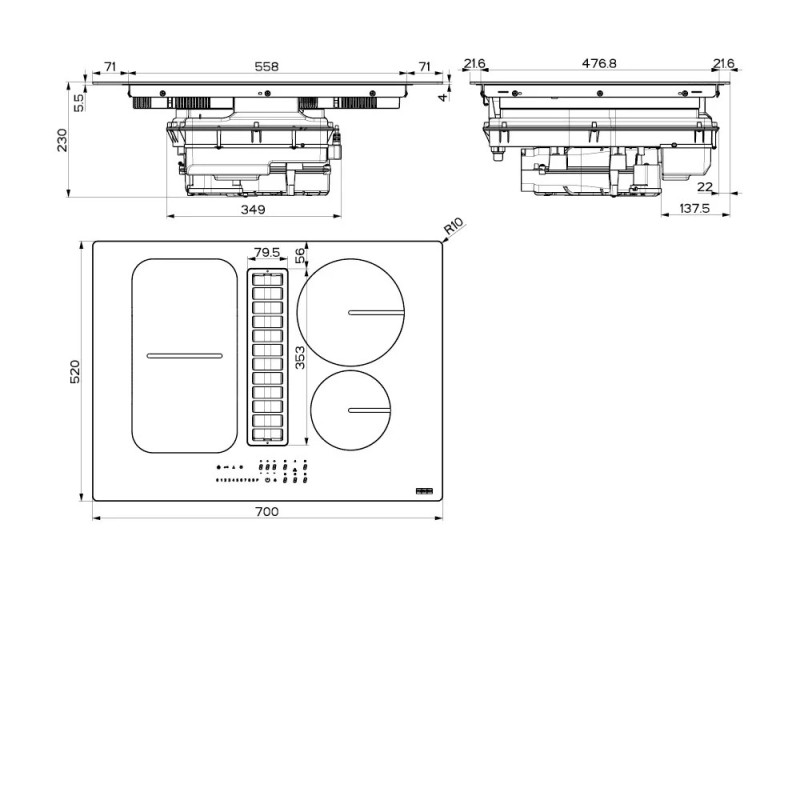 Franke Варильна повверхня Franke індукційна, 70см, розширена зона, вбудована витяжка, Booster, 1050м.куб/год, A++, автовідключення, чорний (340.0678.203)