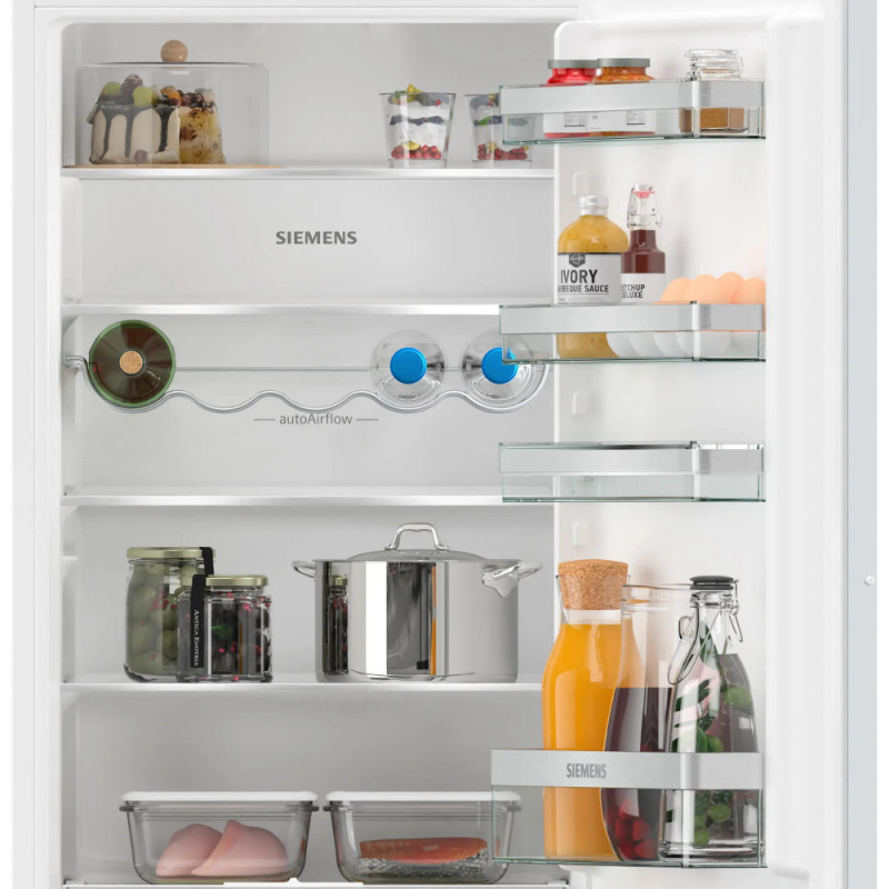 Вбудовуваний холодильник Siemens KI87VVSE0N із нижньою морозильною камерою поєднує раціональне використання простору та стабільну роботу. Холодильне відділення об’ємом 200 л доповнене морозильним на 70 л. Контейнер hyperFresh підтримує свіжість овочів і фруктів упродовж тривалішого часу. LED-освітлення рівномірно висвітлює внутрішній простір. Конструкція з ковзним шарніром забезпечує коректну інтеграцію в кухонні меблі.