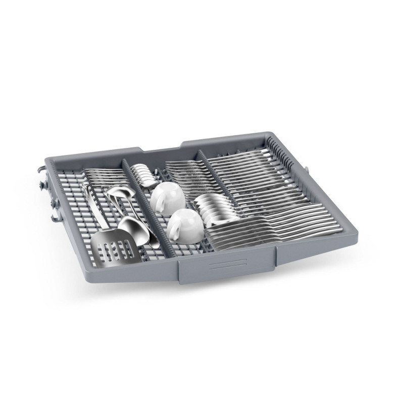 Посудомийна машина Bosch серії 6 — вбудовувана модель шириною 60 см із завантаженням до 14 комплектів посуду. Конструкція оснащена двигуном EcoSilence Drive, системою сушіння з теплообмінником та автоматичним відчиненням дверцят. Передбачено керування через застосунок Home Connect, віддалений контроль роботи та збереження улюбленої програми. Модель підтримує набір програм і додаткових опцій для різних сценаріїв миття.