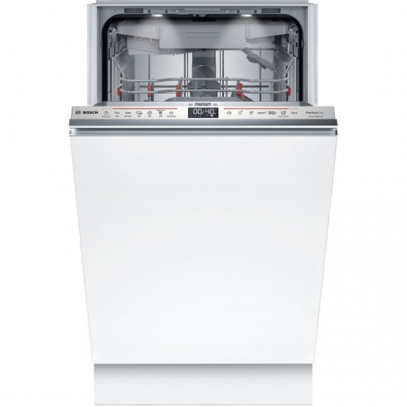 Вбудована посудомийна машина Bosch завширшки 45 см розрахована на 10 комплектів посуду. Дисплей відображає залишковий час і параметри програми. Третій кошик підвищує місткість та зручність розміщення столових приборів. Технологія Zeolith® забезпечує ефективне сушіння з оптимальним споживанням електроенергії. Двигун EcoSilence Drive працює тихо та стабільно.