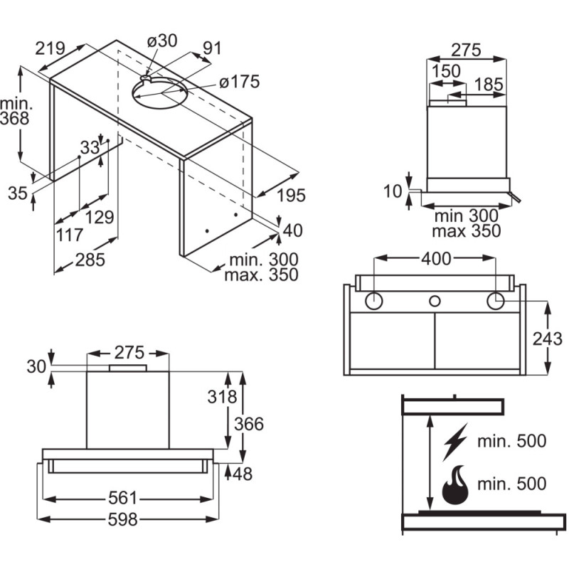 Electrolux Витяжка Electrolux вбудована, 60см, 600м.куб/год., чорний (LFP516K)