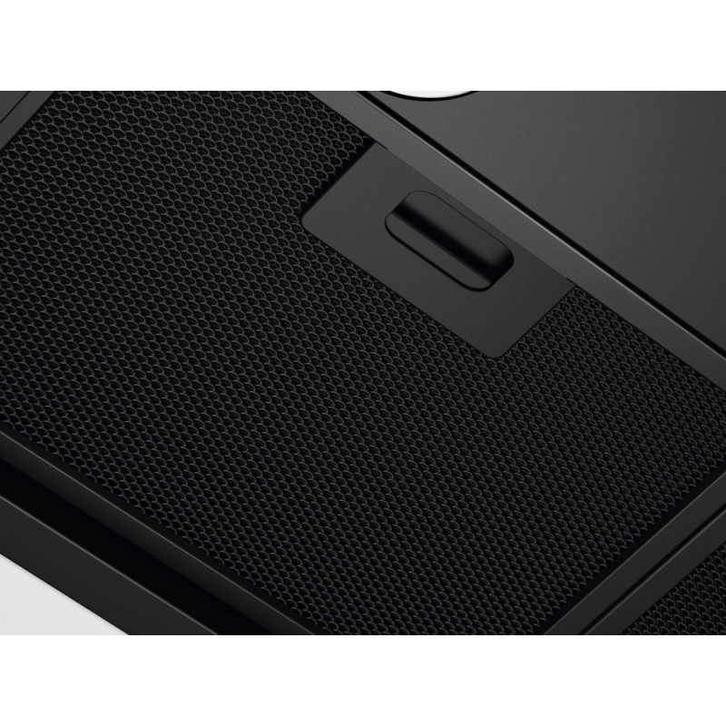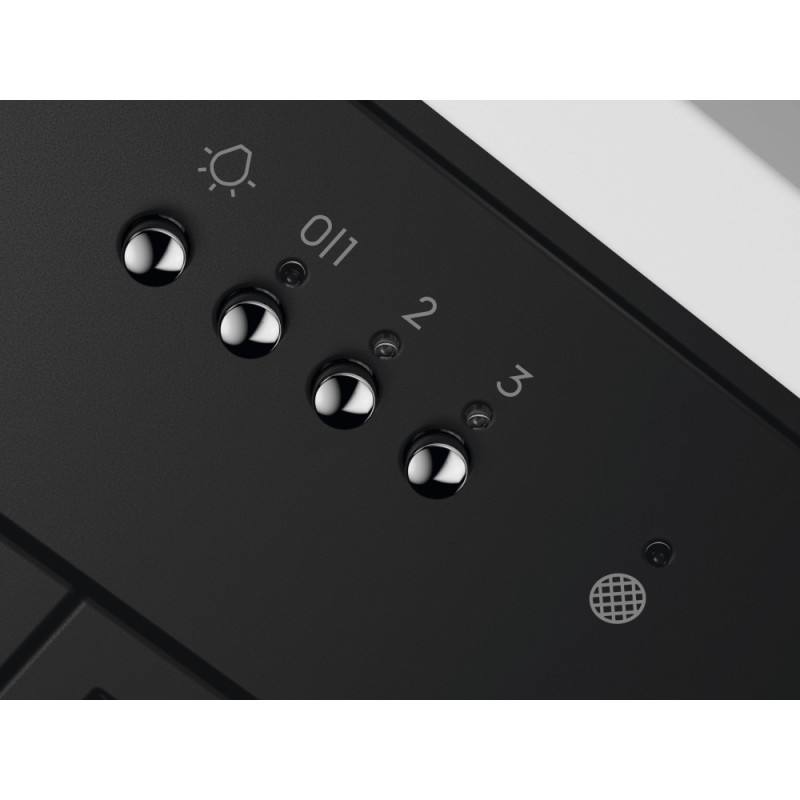 Electrolux LFP516K — стильна повністю вбудована витяжка шириною 60 см у глибокому чорному кольорі з продуктивністю до 600 м³/год (інтенсивний режим). Оснащена електронними кнопками, LED-підсвіткою 2×3 Вт, індикаторами забруднення жирового та вугільного фільтрів, а також працює як у режимі відведення, так і рециркуляції (вугільний фільтр окремо). Тиха на повсякденних швидкостях (55–66 дБ), ідеально підходить для сучасних кухонь з острівними або вбудованими шафами, де потрібна максимальна непомітність і ефективність.