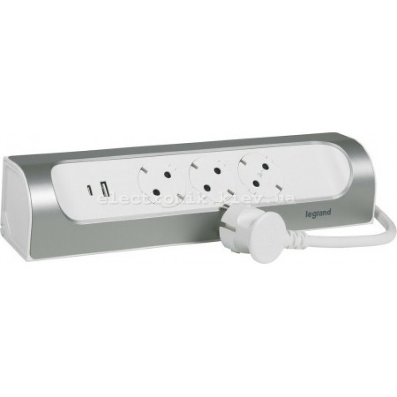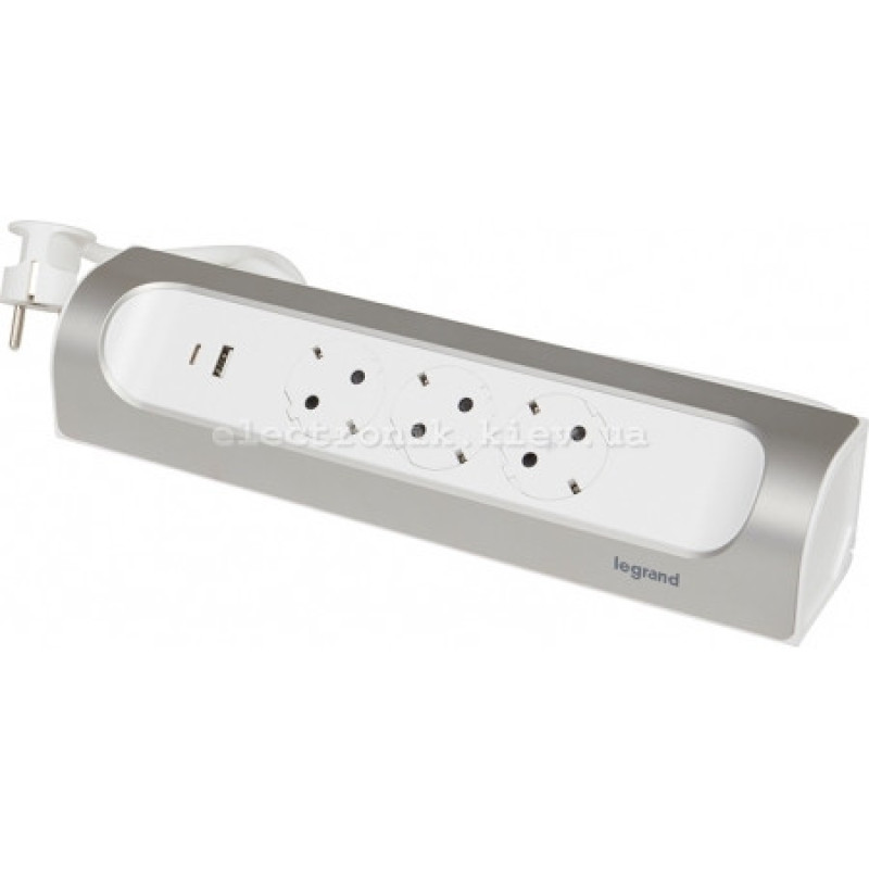 Legrand Подовжувач мережевий без кабелю, 3xТипF, 16A, 1xUSB-A,1xUSB-C, кутовий, білий (694504)