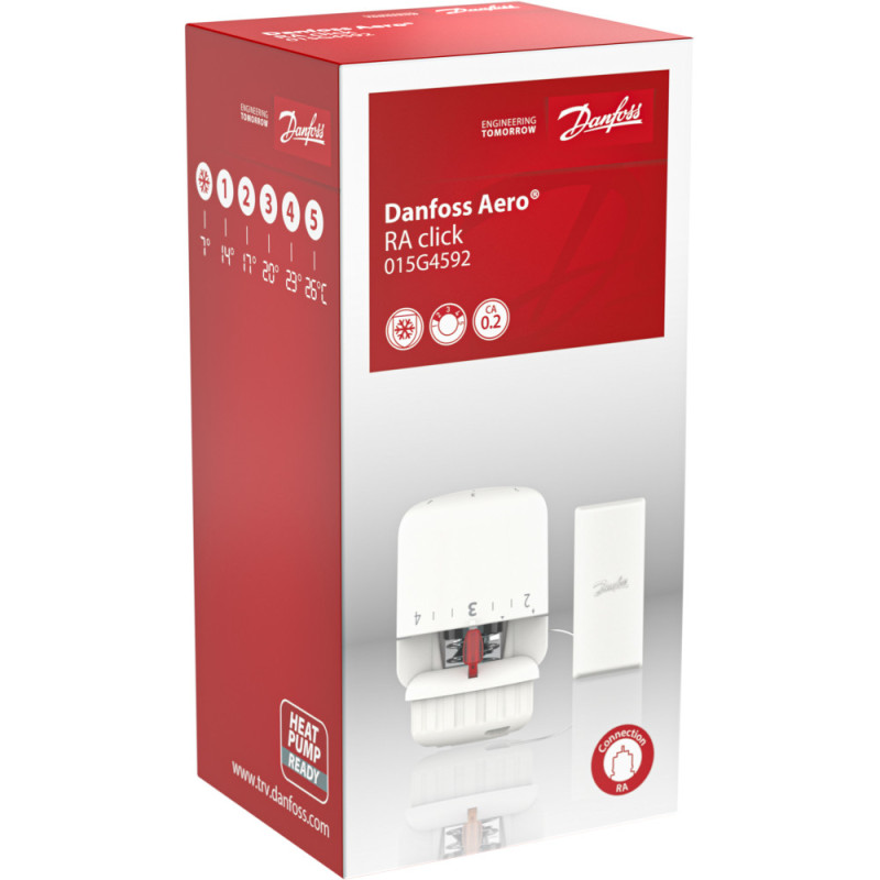 Danfoss Термостатичний елемент Aero, RA, +7...26 °C, Click, виносний датчик, білий (015G4592)