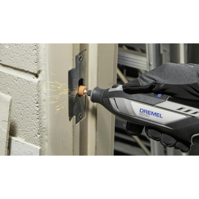 Аккумуляторная шлифмашина Dremel 8250-5 с бесщеточным двигателем обеспечивает стабильную производительность на уровне сетевых моделей, с аккумулятором 12 В на 2 А·ч для мобильной работы. Инструмент оснащен цифровым дисплеем для мониторинга скорости от 5000 до 30 000 об/мин, заряда и состояния, а также системой EZ Twist для быстрой замены аксессуаров. Комплект содержит 5 аксессуаров EZ SpeedClic, зарядное устройство и сумку для организации.