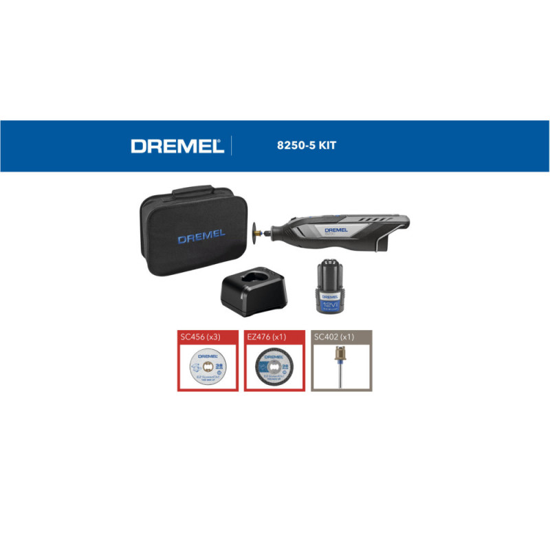 Dremel Шлифмашина шлифовально-гравировальная аккумуляторная 8250-5 12В 1х2А·час 5000-30000об/мин ЗП 0.59кг (F.013.825.0JA)