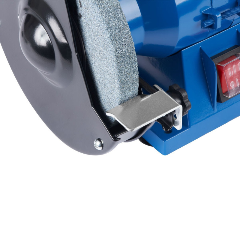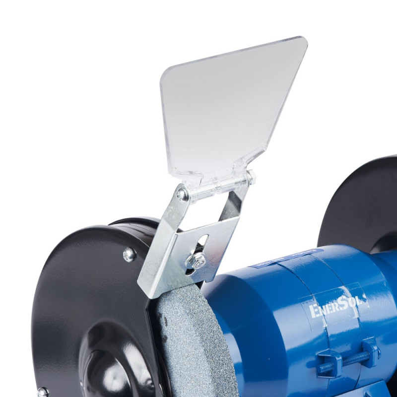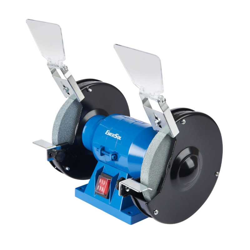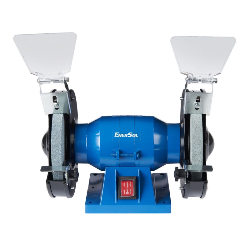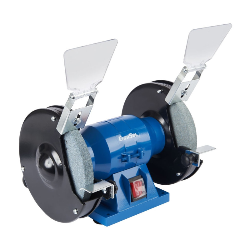 Заточной станок EnerSol EBG-150E с двумя абразивными кругами диаметром 150 мм и мощностью 150 Вт предназначен для заточки инструмента и шлифования деталей. Скорость вращения 2990 об/мин обеспечивает стабильную работу без чрезмерного нагрева кромок. Защитные экраны, опорные площадки и резиновые ножки способствуют безопасному и комфортному использованию в ограниченном пространстве.