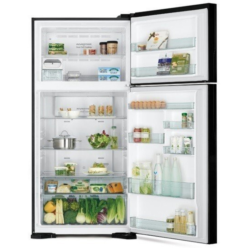 Hitachi Холодильник с верхн. мороз., 184x86х74, холод.отд.-405л, мороз.отд.-145л, 2дв., А++, NF, инв., зона нулевая, черный (стекло) (R-VG660PUC7-2GBK)