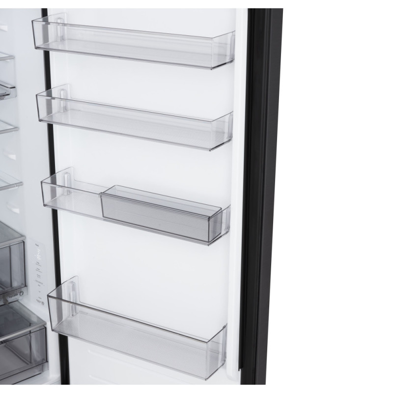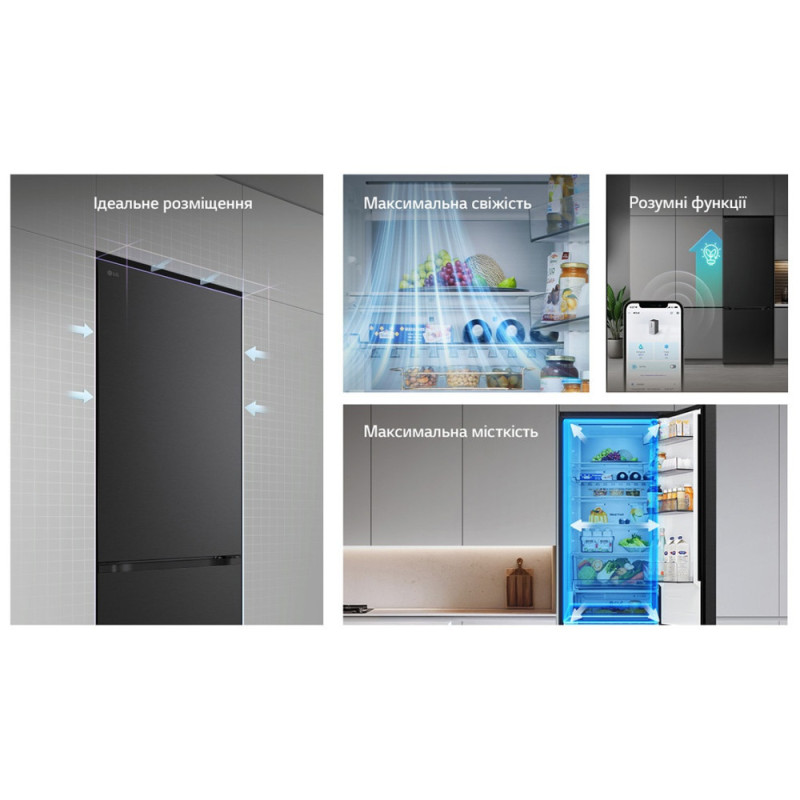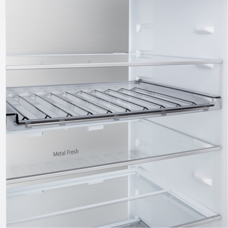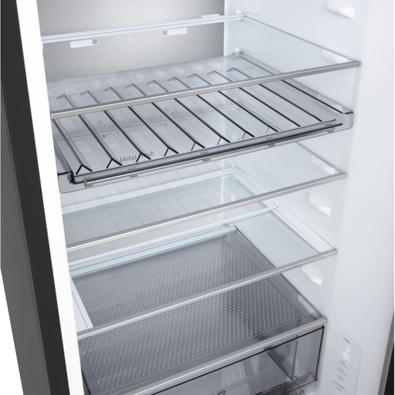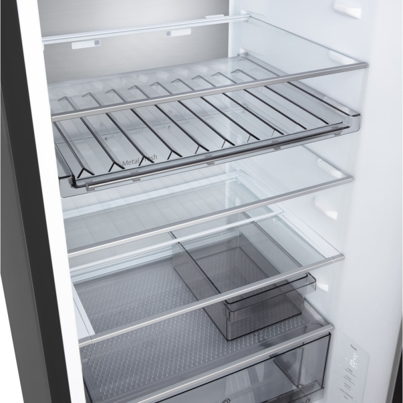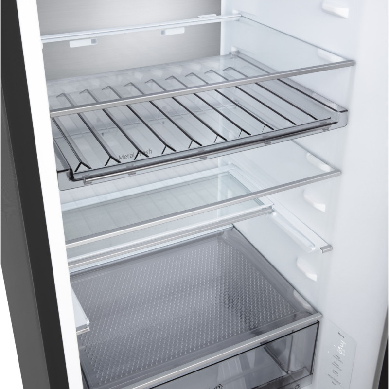 Дополнительно:LED-освещение, крышка Moist Balance Crisper для поддержания оптимальной влажности, Антибактериальный уплотнитель Bio Shield, Режим экономии электроэнергии Eco Friendly, Крышка для поддержания оптимальной влажности, Перевешивание дверей, нулевой зазор, лоток для замораживания льда, винная полка, складная полка, передвижная корзина, мини корзина на дверце, металлическая задняя стенка Metal Fresh