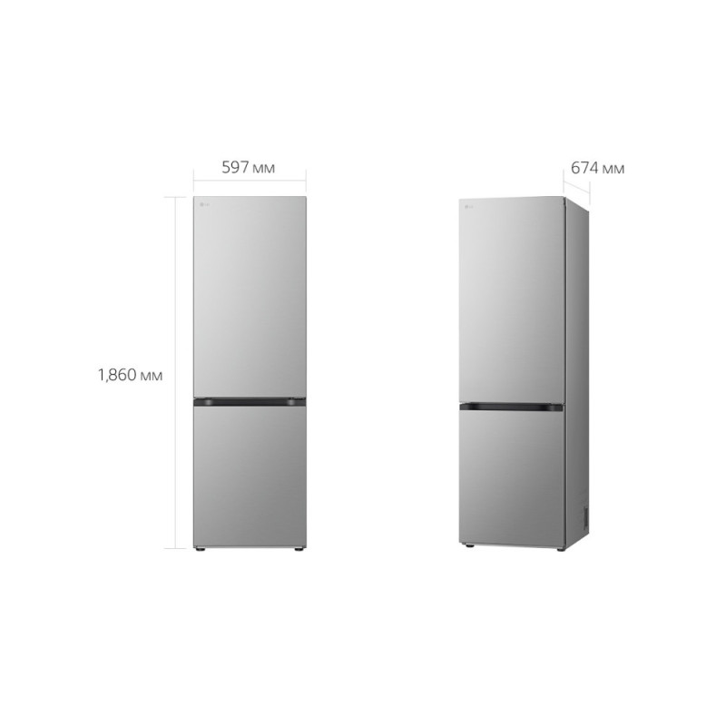 LG Холодильник с нижн. мороз., 186x60х68, холод.отд.-220л, мороз.отд.-113л, 2дв., E, NF, инв., диспл внутр., зона св-ти, серебристый (GC-B459EMYM)