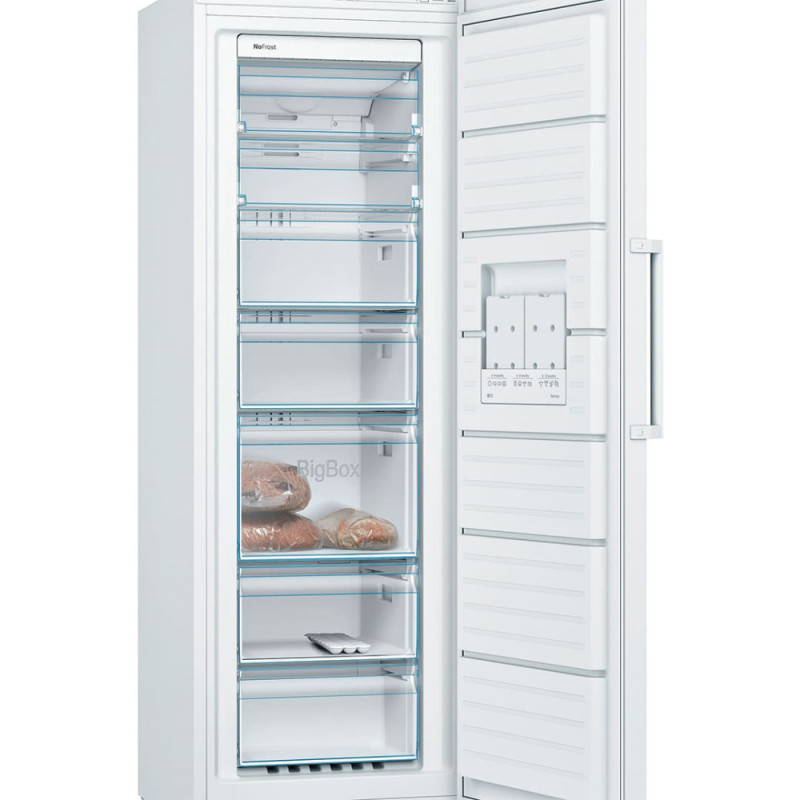Морозильная камера Bosch серии 4 — отдельно устанавливаемая модель с полезным объемом 225 л. Оснащена системой NoFrost, контейнером BigBox и многопоточной системой охлаждения MultiAirflow. Предусмотрены функция быстрой заморозки и предупредительная сигнализация. Конструкция предназначена для ежедневного хранения замороженных продуктов.