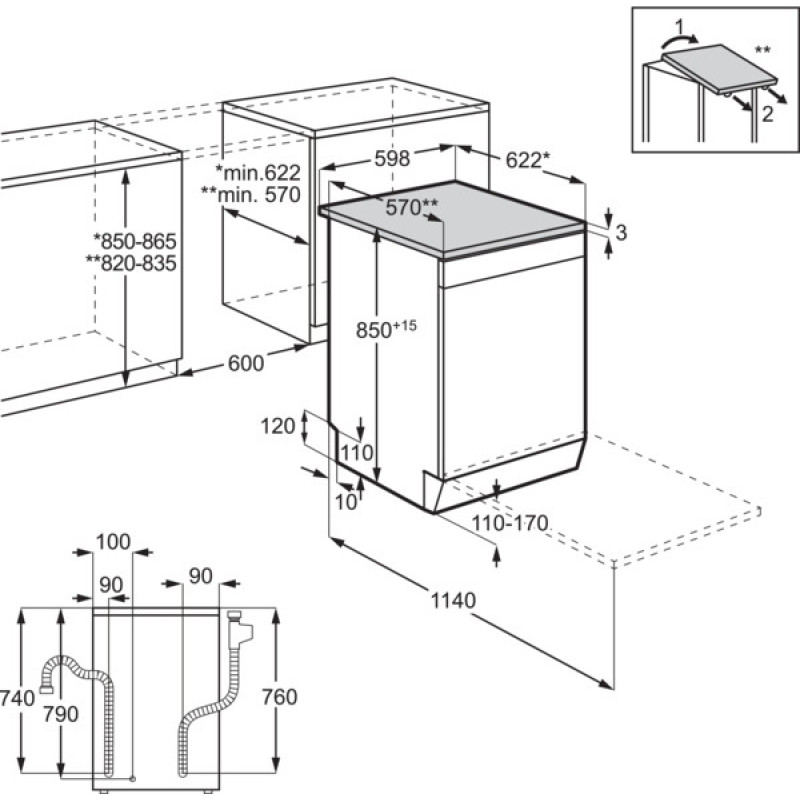 съемная столешница, система Thermo Efficient, система остановки воды, сенсор определения уровня загрязнения воды, Функция усиленной гигиены, автоматическое выключение