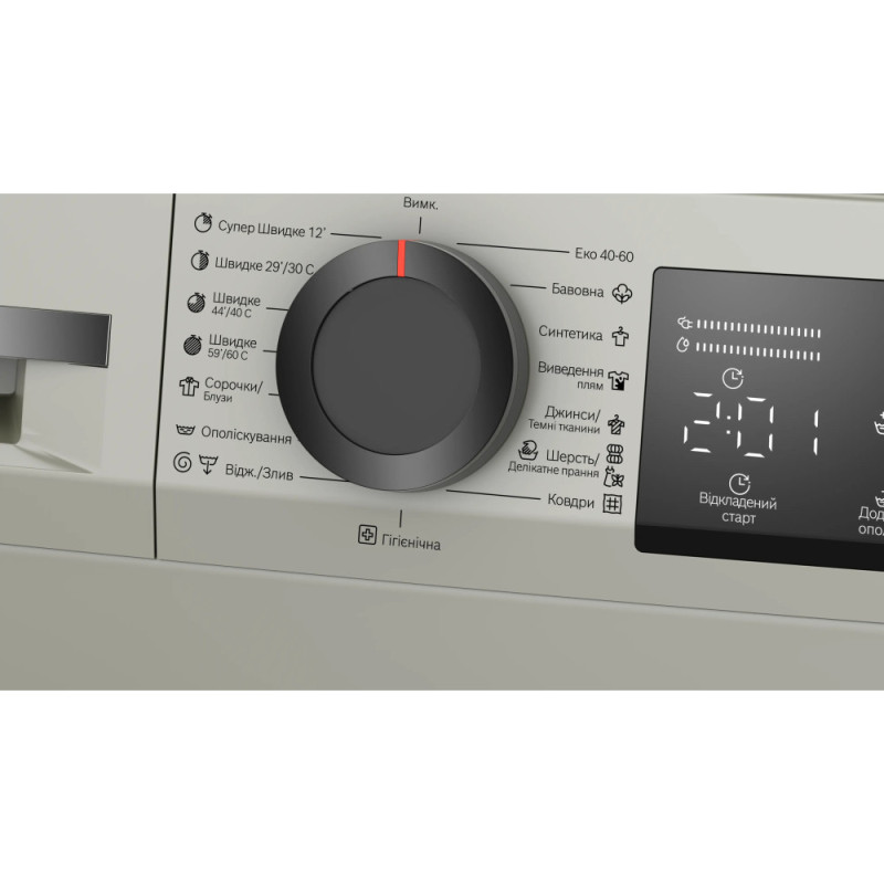 Хлопок, Шерсть, Синтетика, Гигиеническая, Эко 40-60, Отжим/слив, Рубашки/блузки, Одеяла, Джинсы, Ополаскивание, Виведення плям, Швидке 59'/60 °C, Швидке 44'/40 °C, Швидке 29'/30 °C, Супер швидке 12'