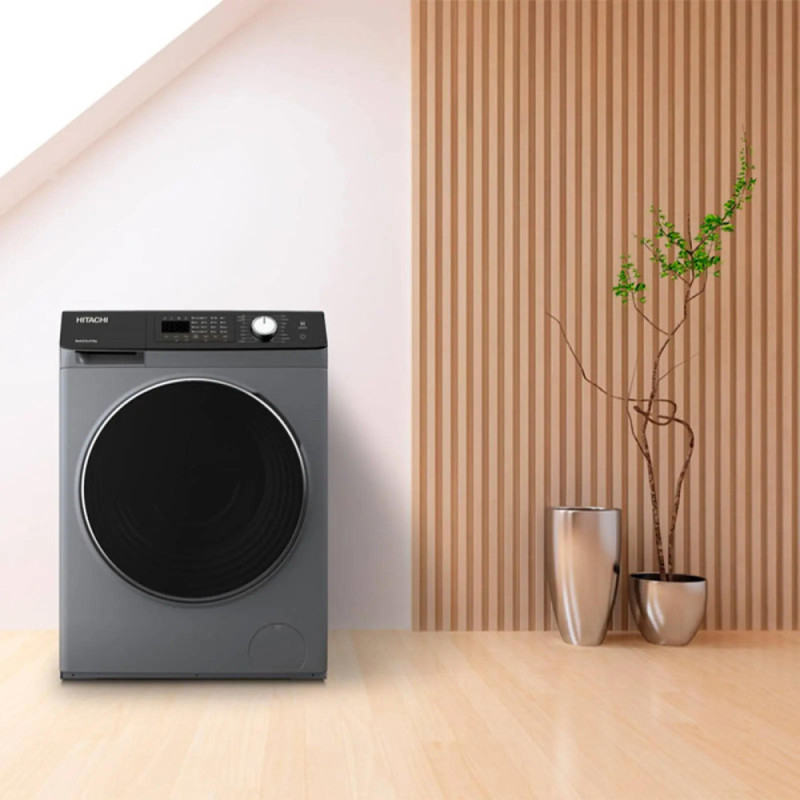Hitachi Пральна машина фронтальная, 8кг, 1400, A+++, 60см, дисплей, пар, инвертор, люк черный, серебристый (BD-802HVOS)