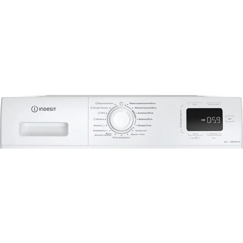 Indesit Стиральная машина фронтальная, 8кг, 1200, A+++, 54.6см, дисплей, пар, инвертор, люк черный, белый (IM862BMYTIMEUA)