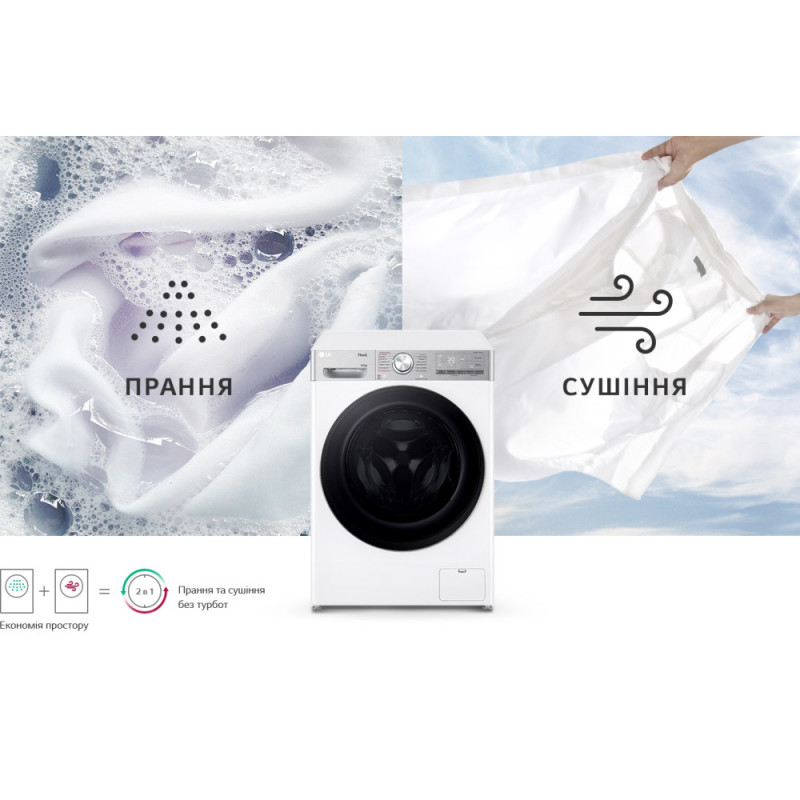 LG Стирально-сушильная машина фронтальная, 9(5)кг, 1200, А, 48см, дисплей, пар, инвертор, белый (F2R9FC2E)