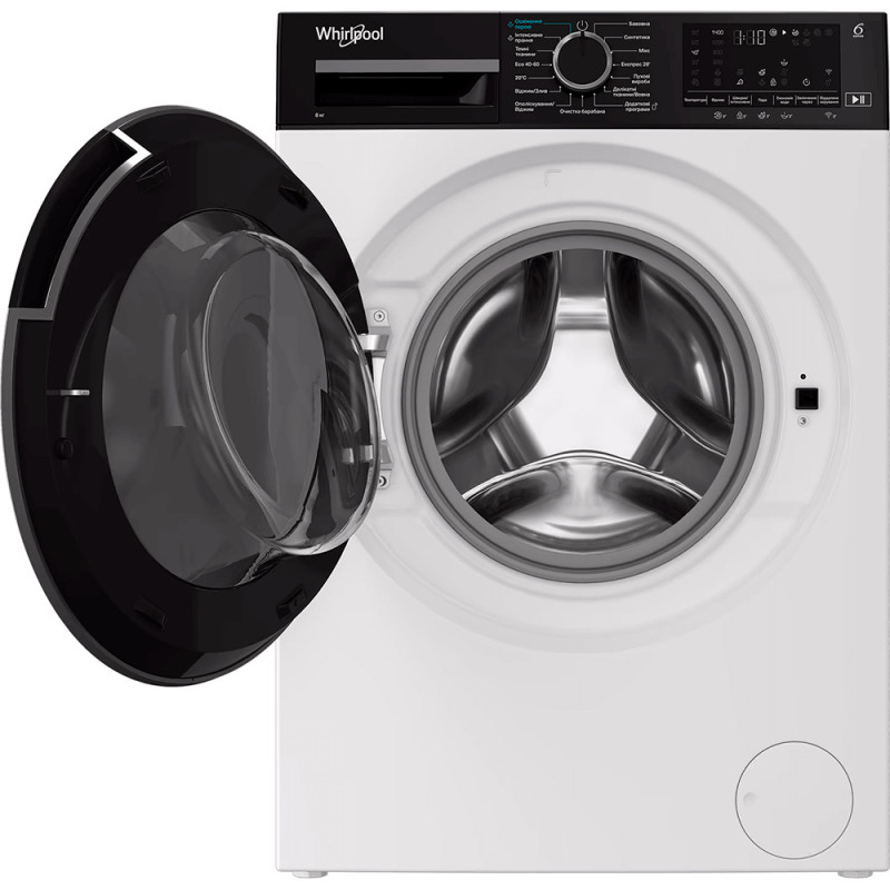Whirlpool Стиральная машина фронтальная, 8кг, 1400, C, 55см, дисплей, пар, инвертор, люк черный, белый (WAM81WBUA)