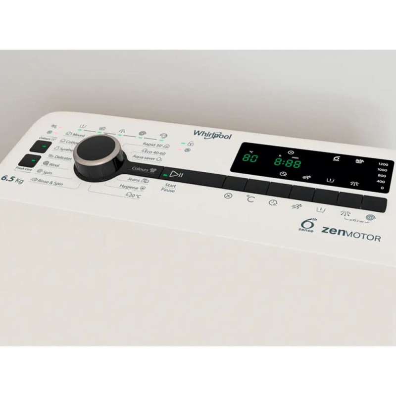 Whirlpool Whirlpool WM top load, 6,5kg, 1200, С, 60cm, display, invertor, white (TDLRB65242BSEU/N)