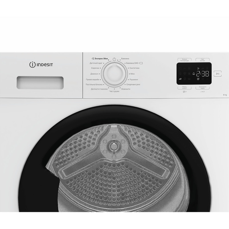 Indesit Сушильная машина тепловой насос, 8кг, A+, 54,5см, дисплей, белый (CYSD82DWBUA)