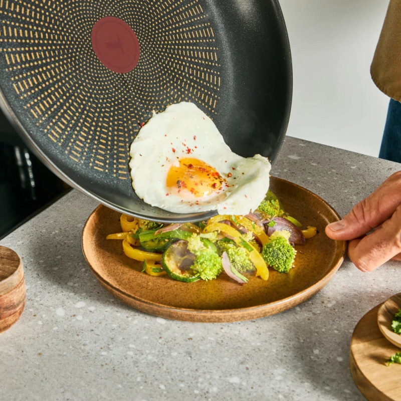 Сковорода Tefal Emotion+ диаметром 24 см изготовлена из нержавеющей стали и оснащена антипригарным покрытием Extra Life X5. Конструкция обеспечивает равномерное распределение тепла на всех типах плит, включая индукционные. Индикатор нагрева Thermo-Signal позволяет определить оптимальную температуру для начала приготовления. Сковорода предназначена для повседневного приготовления блюд.