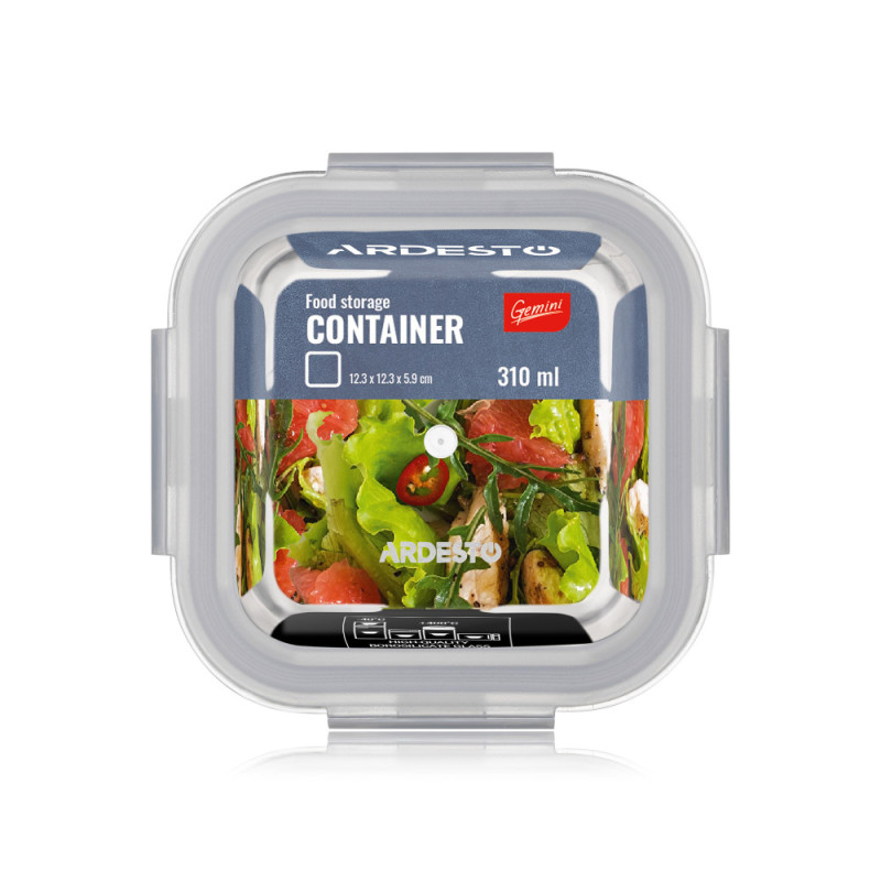 ARDESTO Food storage container Gemini 0.31l, borosilicate glass, plastic, square, transparent (AR1230BSQ)