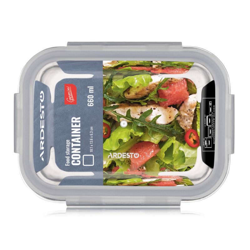ARDESTO Food storage container Gemini 0.66l, borosilicate glass, plastic, rectangular, transparent (AR1260BRC)