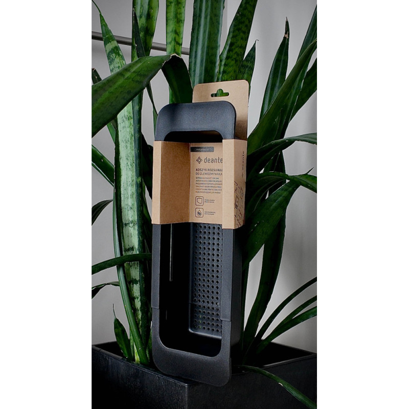 Корзина Deante предназначена для мытья и сушки овощей и фруктов. Прочный материал PP обеспечивает лёгкость и устойчивость к влаге, а матовое чёрное покрытие nero подчёркивает современный стиль кухни. Компактные размеры 134×68×395 мм позволяют удобно разместить корзину в мойке или на столешнице.