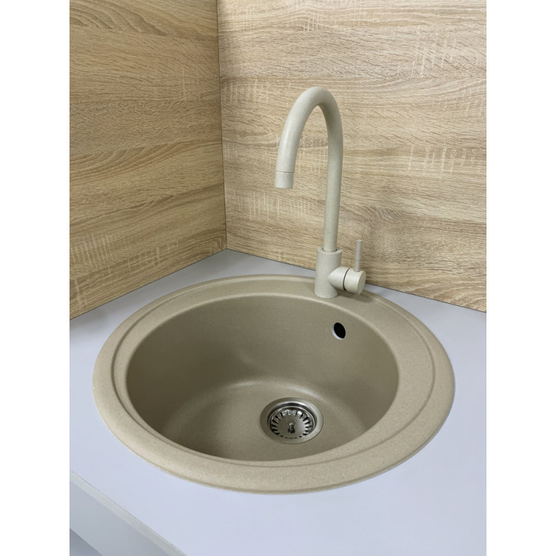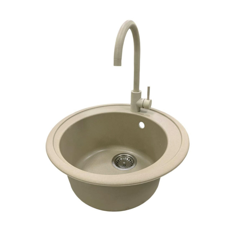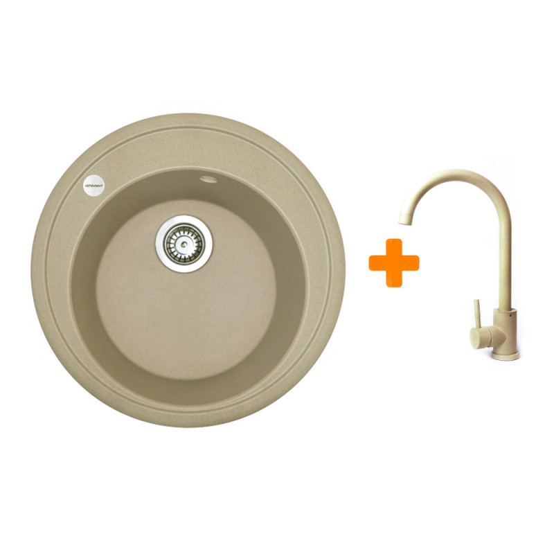 Adamant Набор кухонная Sun, искуственный камень, круглая, без крыла, 510x200мм, чаша - 1, врезная, Сахара + смеситель (4824296910102)