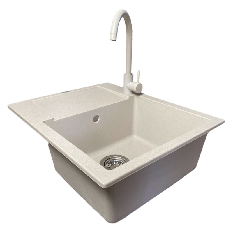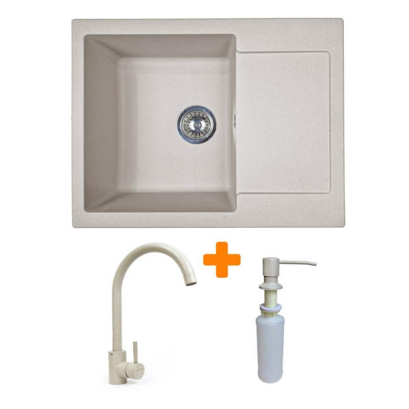 Adamant Набор кухонный Minimal, искуственный камень, прямоуг., с крылом, 615х495х200мм, чаша - 1, врезная, Avena + смеситель и дозатор (1824296902306)