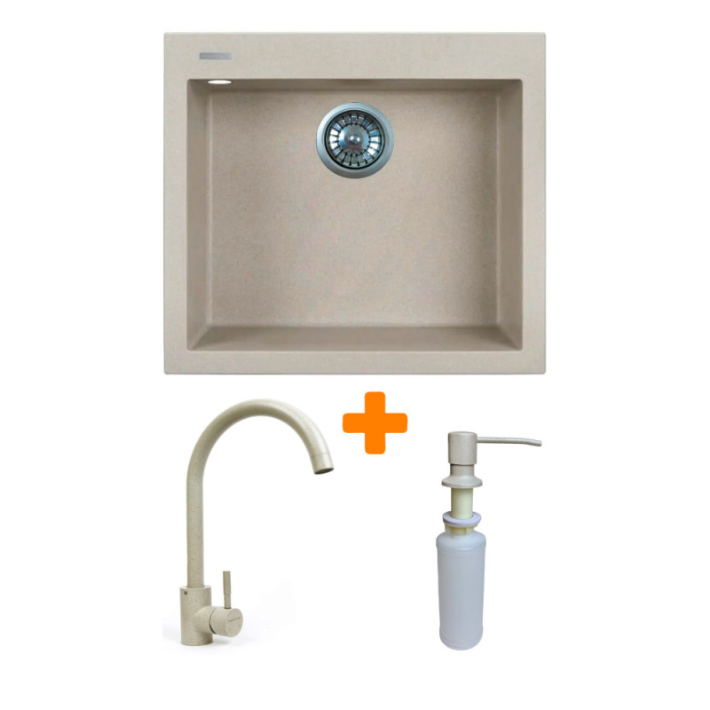 Adamant Набор кухонный Univer, искуственный камень, квадрат, без крыла, 560х500х200мм, чаша - 1, врезная, Avena + смеситель (4824296902106)