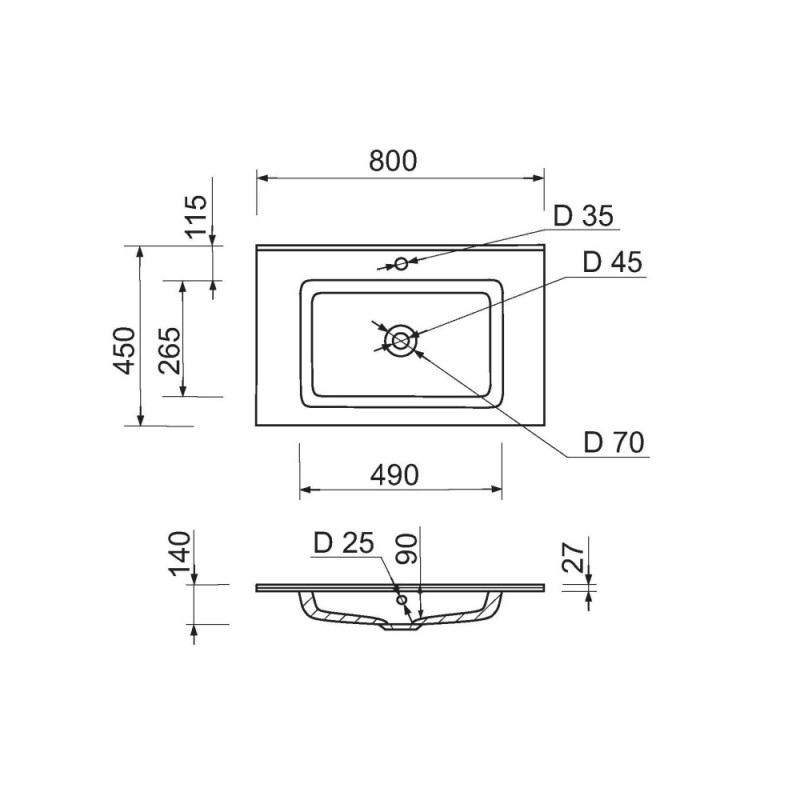 Раковина Adamant FLAT имеет прямоугольную форму, изготовлена из искусственного камня с размерами 800 x 450 x 140 мм и белым цветом. Накладной тип установки с отверстиями для смесителя и перелива позволяет монтаж на тумбу. Материал создан по технологии Solid Surface, устойчив к воздействию и долговечен.