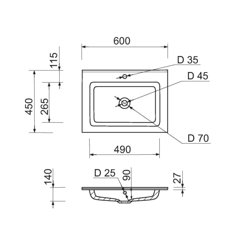 Раковина Adamant FLAT имеет прямоугольную форму, изготовлена из искусственного камня с размерами 600 x 450 x 140 мм и белым цветом. Накладной тип установки с отверстиями для смесителя и перелива позволяет монтаж на тумбу. Материал создан по технологии Solid Surface, устойчив к воздействию и долговечен.