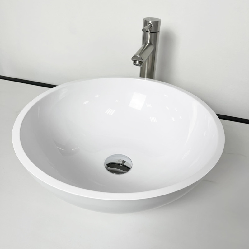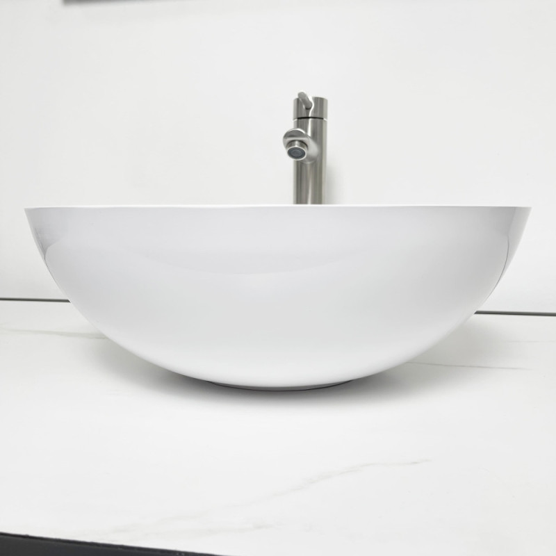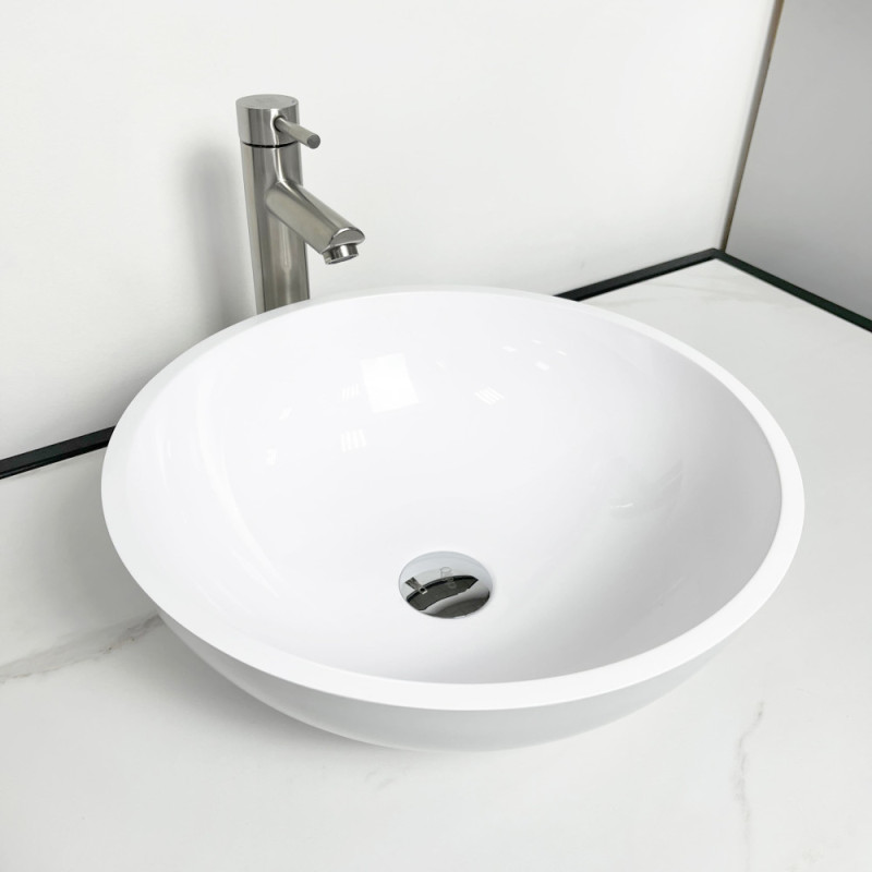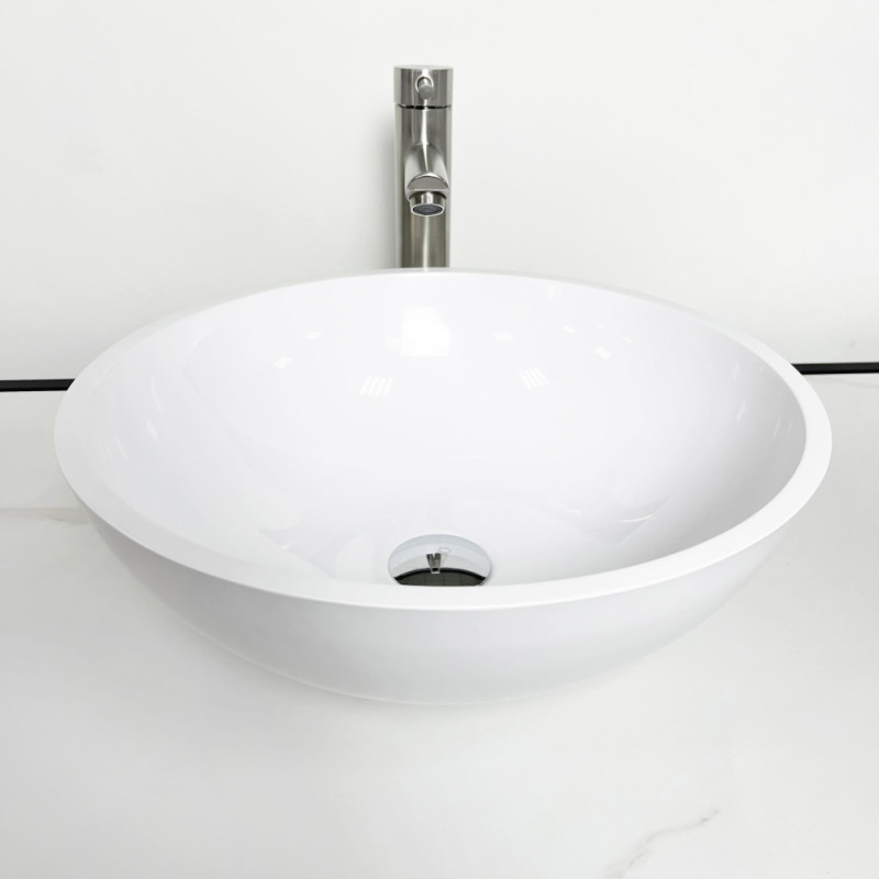 выдерживает температуру до +165°C, без переливного отверстия, под отдельностоящий врезной или настенный смеситель, технология Solid Surface