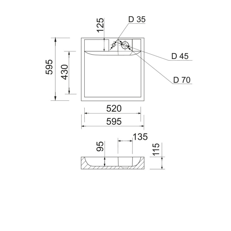 Adamant Раковина, умывальник WASHER NEW, искуственный камень, прямоуг., с отверстием для смесителя, без перелива, 595х595х115мм, накладной, черно-белый (4824296202903)
