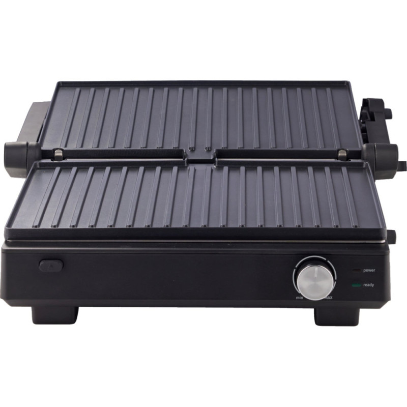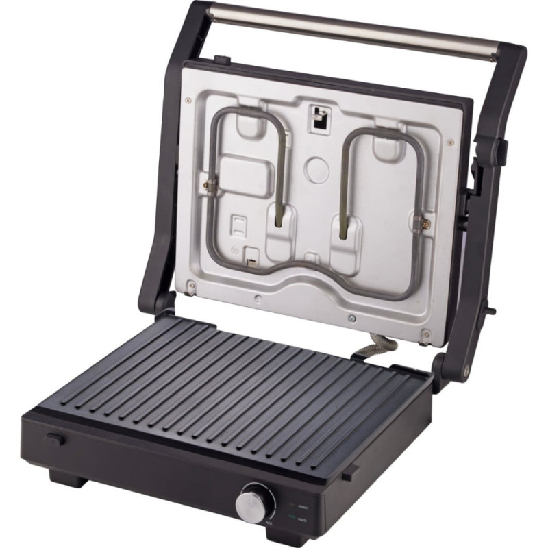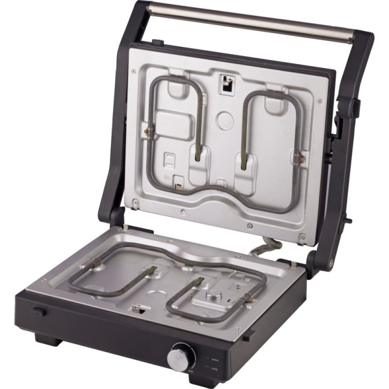 Холодные ручки, Ручка для переноски, гумові ніжки, Пластини з антипригарним покриттям, Открытие на 180°, Съемная односторонняя панель, Стандартный трубчатый нагреватель, Защитная защелка, можливість вертикального зберігання, Дренажное отверстие и лоток для сбора остатков масла