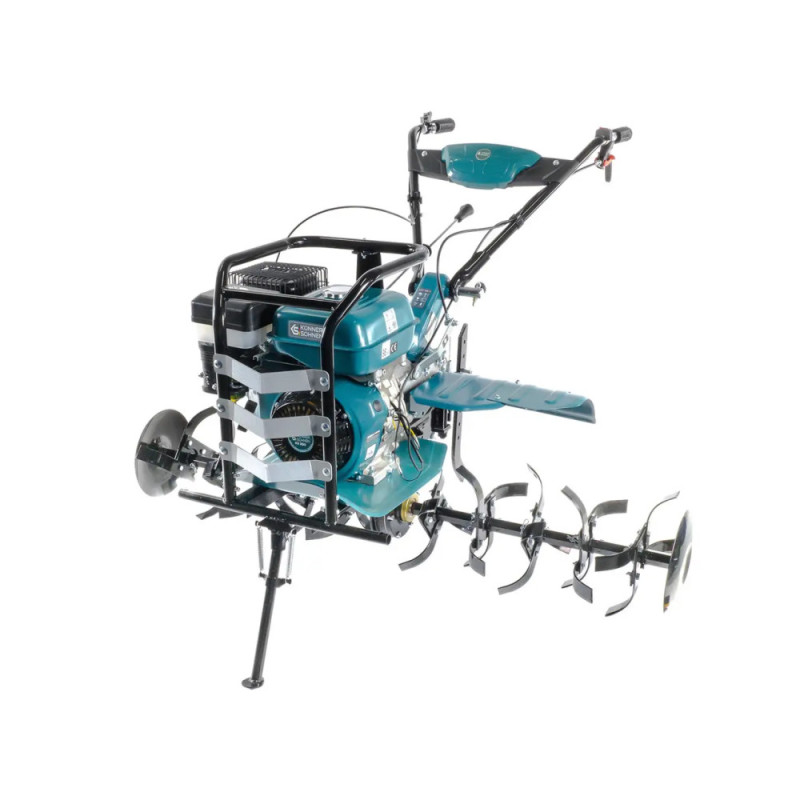 Konner&Sohnen KS 9HP-1350G-3 — бензиновый культиватор с двигателем 9 л.с., шириной обработки 134 см и глубиной до 35 см для обработки средних и больших участков. Коробка передач с шестерённым приводом имеет три скорости вперёд и реверс — культиватор адаптируется к типу почвы и условиям обработки. Активный приводной задний вал позволяет подключать дополнительное оборудование: мотопомпу, распылитель или прицеп. Двигатель KS 290 соответствует экологическому стандарту EURO-V и имеет индивидуальный серийный номер для контроля качества обслуживания.