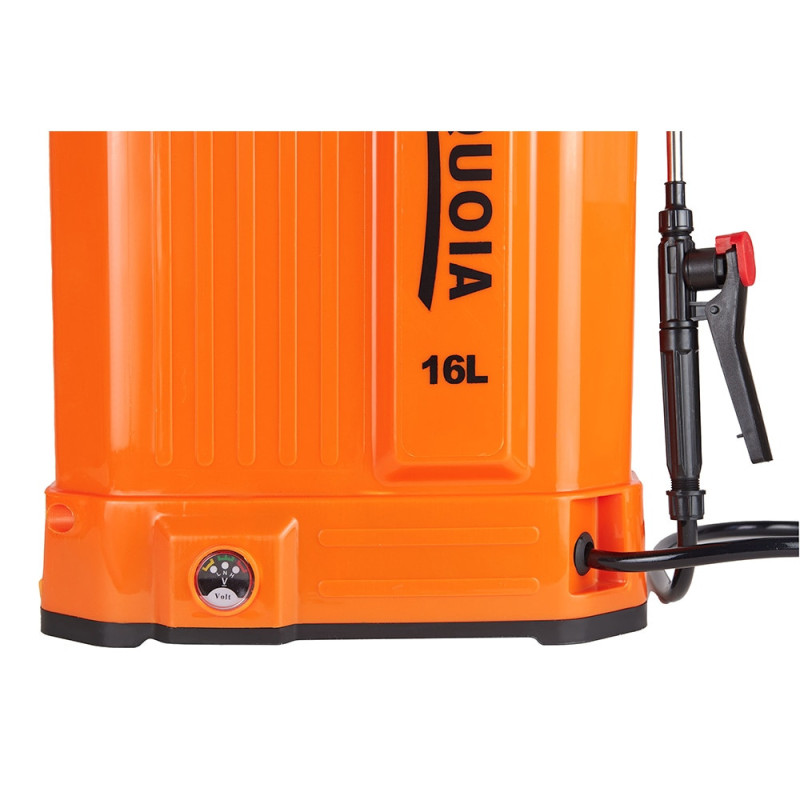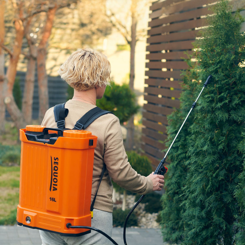 SEQUOIA SBS16 — аккумуляторный опрыскиватель 16 л с давлением до 5 бар. Аккумулятор 12 В 8 А·ч обеспечивает 3–6 часов работы без подзарядки. Равномерное распыление, регулируемая насадка и удобные лямки делают обработку комфортной. Подходит для садов, огородов, теплиц и виноградников. Вес 5 кг (пустой) — оптимальное соотношение объёма и удобства.