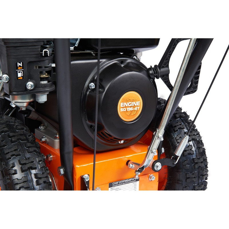Особенности:Потужний чотиритактний двигун, Система регулювання напрямку викидання снігу, Регулювання дальності викидання, Поворотний механізм викиду снігу з можливістю зміни напрямку, Міцний шнековий механізм для роботи з щільним снігом, Самохідна система для зручного пересування, Ергономічна рукоятка для комфортного керування, Великі колеса для легкого маневрування