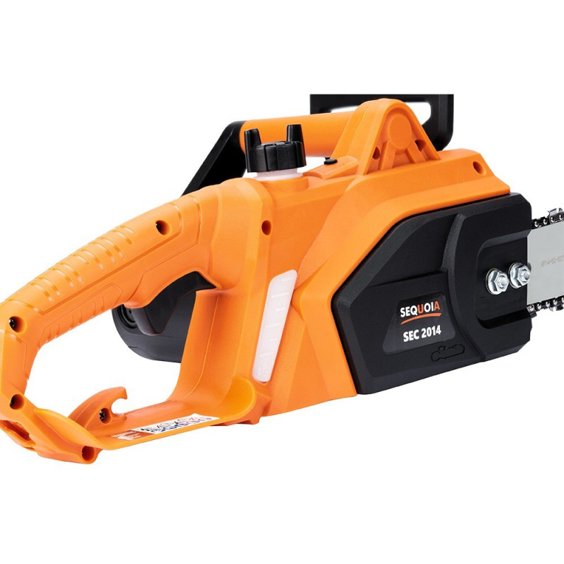 Электрическая цепная пила SEQUOIA SEC2014 мощностью 2 кВт оснащена шиной 35 см с шагом цепи 3/8" и толщиной 1,3 мм. Поперечное расположение двигателя обеспечивает удобный баланс и контроль во время реза. Скорость цепи 15 м/с и автоматическая система смазки поддерживают стабильную работу с древесиной средней твёрдости. Вес 4 кг облегчает длительное использование. Защита от перегрузки контролирует ток и предотвращает перегрев двигателя.
