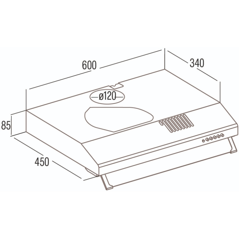 Cata LFK 6001 Wh (02011112) — плоская вытяжка шириной 60 см в белом корпусе. Производительность до 350 м³/ч, 3 уровня мощности, механическое кнопочное управление, алюминиевый фильтр, LED-освещение. Класс энергоэффективности B, минимальное расстояние до плиты 650 мм, диаметр выхода 120 мм. Работает в режиме отвода или рециркуляции (угольный фильтр отдельно). Бюджетное решение для небольших и средних кухонь.