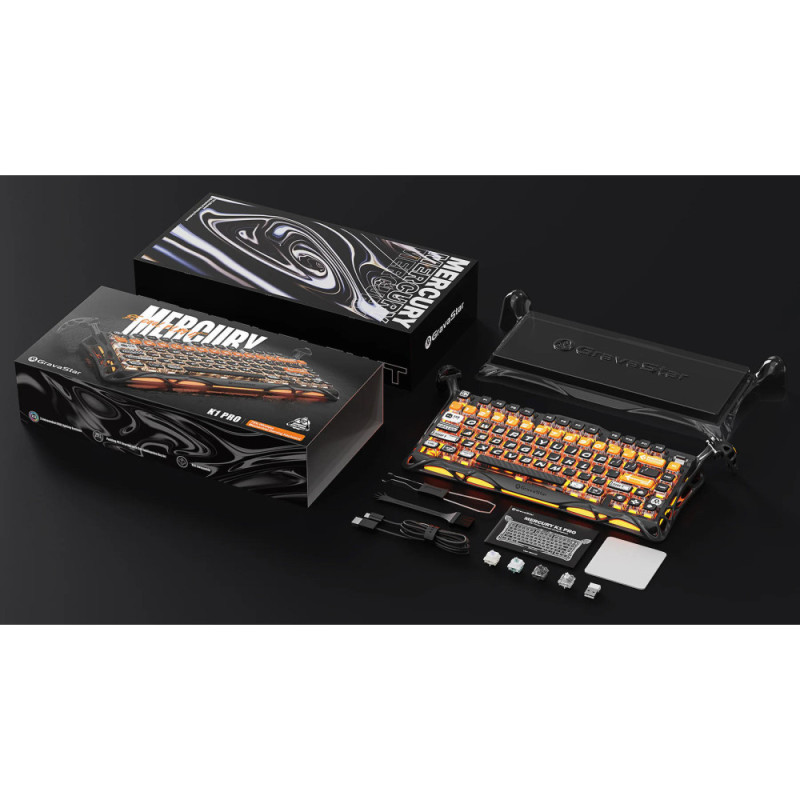 GravaStar Клавиатура механическая Mercury K1 Pro 80keys, GravaStar x Kailh Speedy Mint, BT/WL/USB, CyberFlare (GS_K1_PRO_BO_BLK)