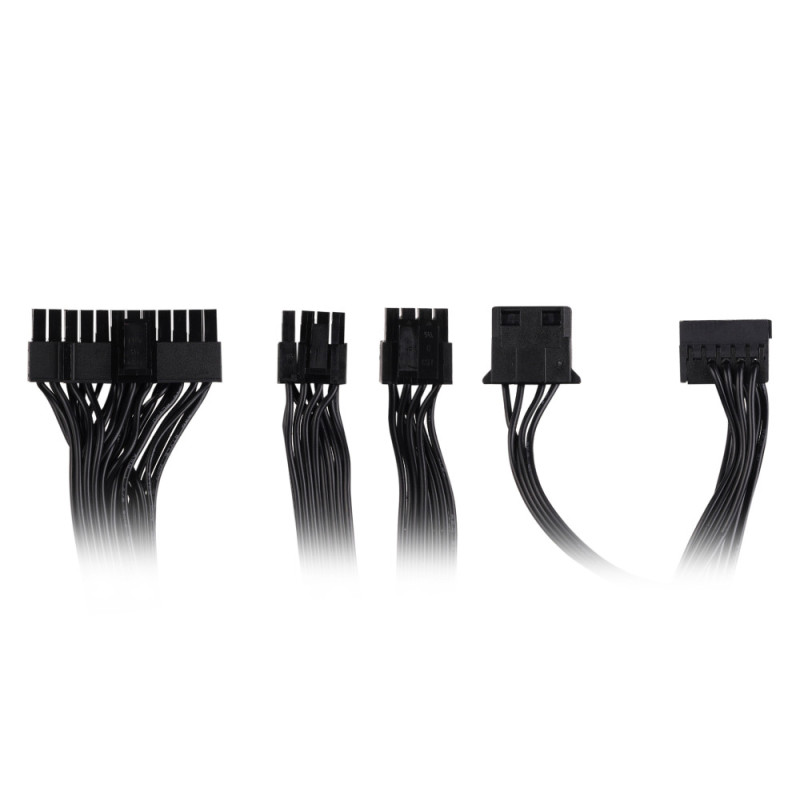 4 x PCI-E 8(6+2) pin, (500+150мм)*2, 1 x MB 24(20+4) pin, 500мм, 1 x CPU 8(4+4) pin, 550мм, 5 x SATA, 500+150+150мм/ 500+150мм, 3 x Molex, 950мм / 800+150мм