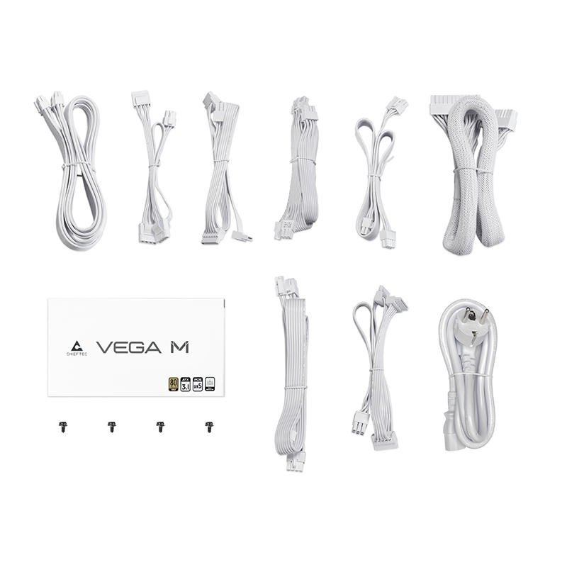 Chieftec Блок питания Vega M (750W), >90%, 80+ Gold, 135мм FDB, 1xMB 24pin(20+4), 2xCPU 8pin(4+4), 3xMolex, 6xSATA, 4xPCIe 8pin(6+2), 1xPCIe GEN5 16pin, Fully Modular, White (PPG-750-CW)